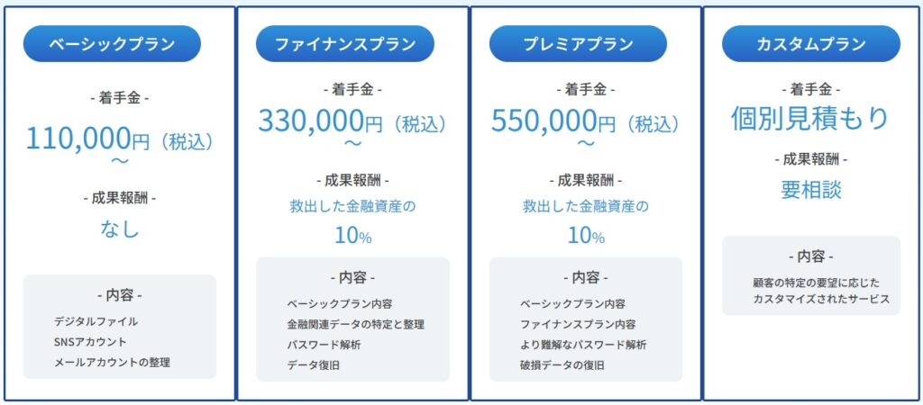 デジタル遺品の整理は、実際の状況が千差万別であり、作業内容も多岐にわたるため、細かく料金設定すると高額になりがちである。