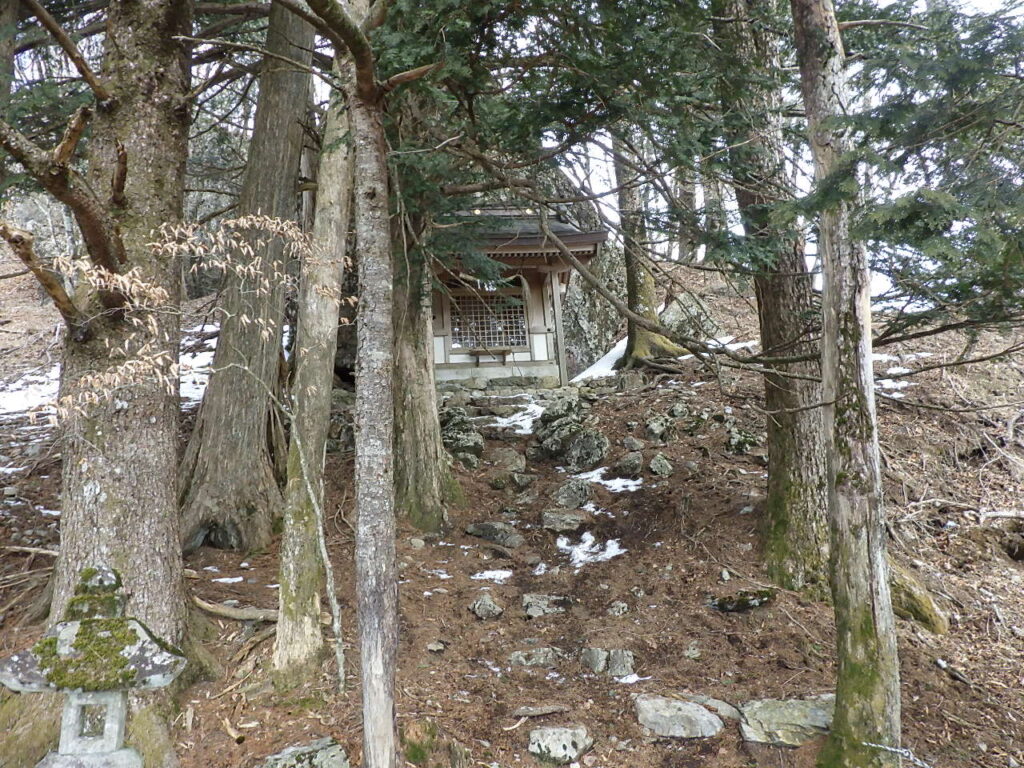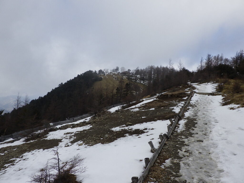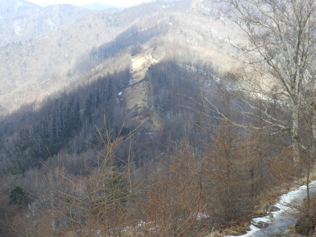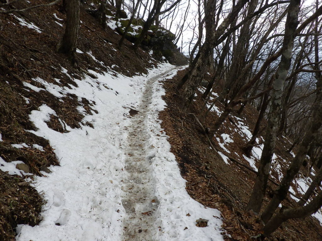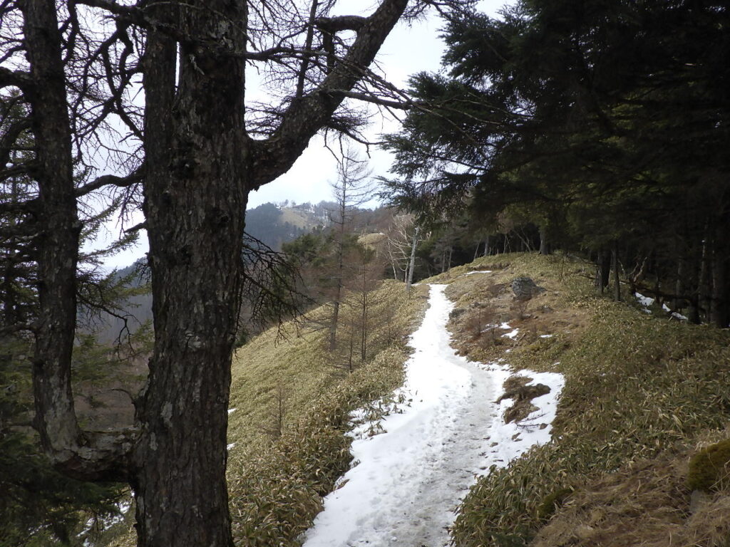 頂上付近は陽当たりが良いせいか風が強いせいか雪がついていなかった。