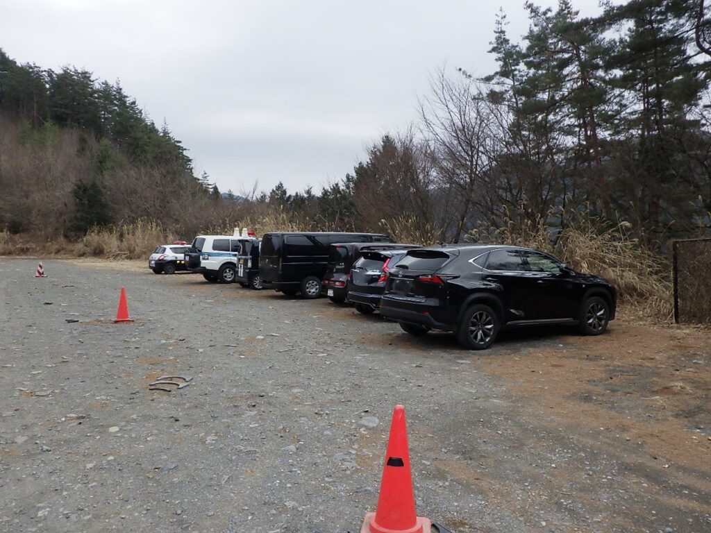 下山完了!数台くらい入れ替わっているかもだが、この日の登山者はこのくらい。なぜか警察車両が奥に・・・?