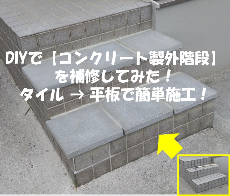 DIYで【コンクリート製外階段】を補修してみた!タイル → 平板で簡単施工!