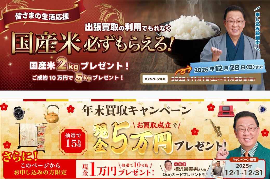 | 出張買取 | 〇(全国・無料) | 〇(全国・無料) |